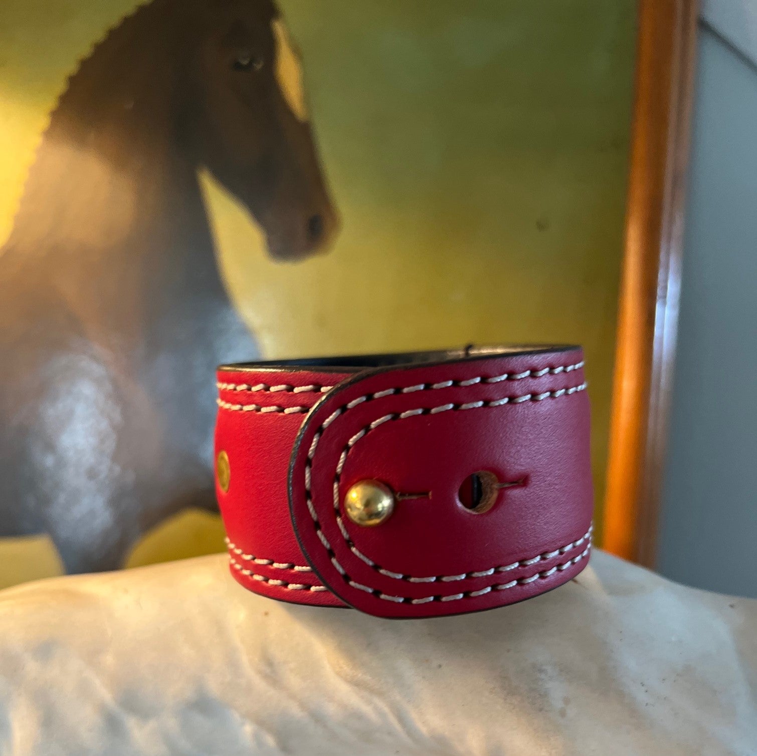 Bridle Leather- Treat this bracelet like a fine saddle. Use saddle soap to clean and condition with a leather conditioner.