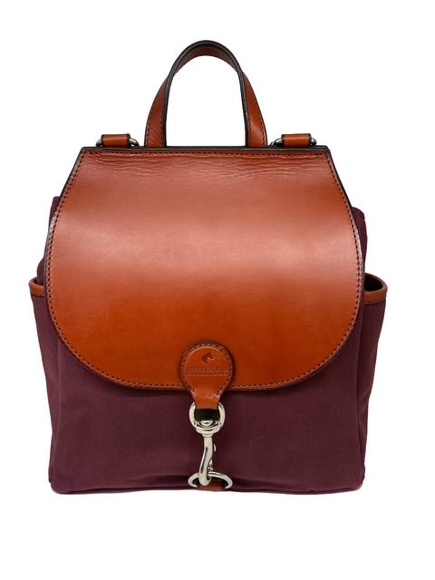 Adjustable straps make it your perfect fit and allow you to carry from the top handle, one shoulder, both shoulders, crossbody or shorten the straps for a shoulder bag. On the outside are a back zipper safety pocket, and two slip pockets. The interior features a back sleeve for tablets, laptops or notebooks and two pockets to organize smaller items like a wallet, sunglasses, tech cords, etc. Luxurious bridle leather paired with sturdy canvas and equestrian grade snaps and rings. The Oxford backpack is benchmade in America by our Master Harness Makers - each one by hand.